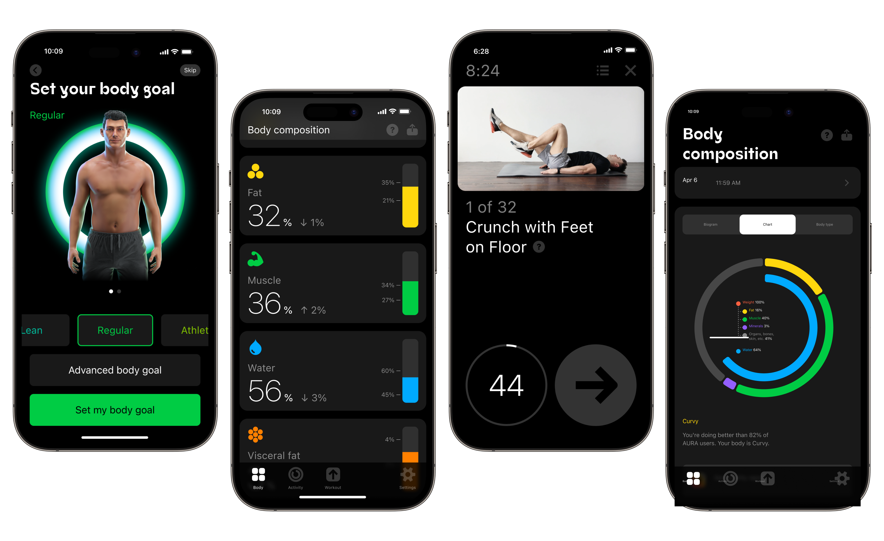 Get personalized recommendations in the AURA App based on your body composition data. Follow our complete guide on your health and fitness journey, including calorie intake, meal preferences, and workout frequency.